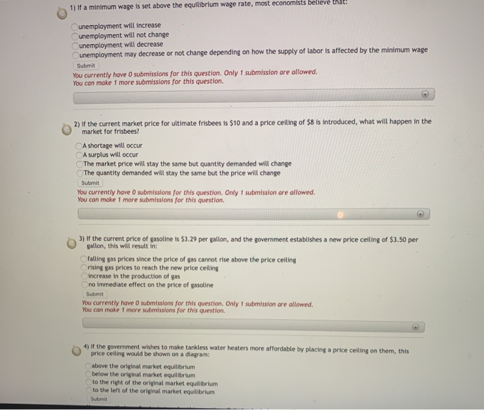 Solved 1 If A Minimum Wage Is Set Above The Equilibrium Chegg Com