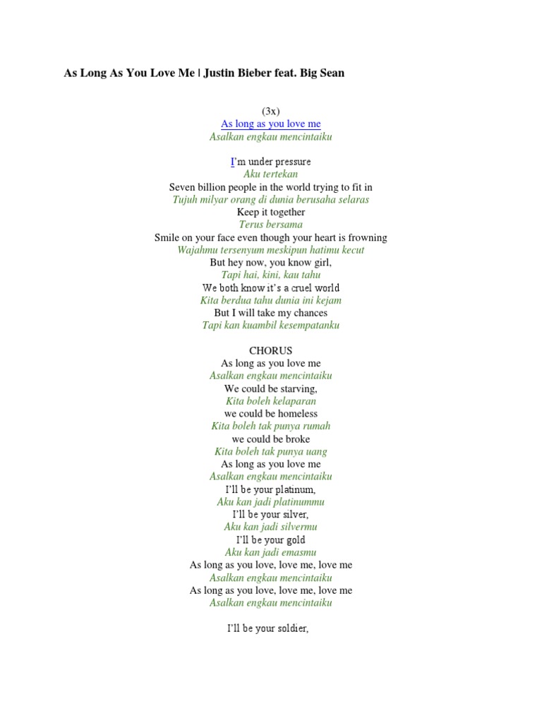 Terjemahan Lagu Justin Bieber As Long As You Love Me Liriklagu Id