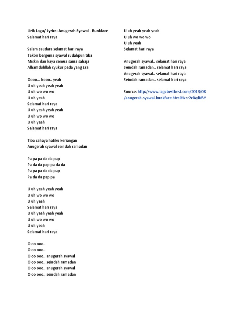 Jadikan lagu anugerah syawal sebagai nada dering andaDapatkanlah versi pop rock akustik dengan mudah sekaliAnda boleh muat turun lagu ini sebagai nada de. 1 2 raises it to a higher octave. Lirik Lagu Anugerah Syawal Bunkface.
